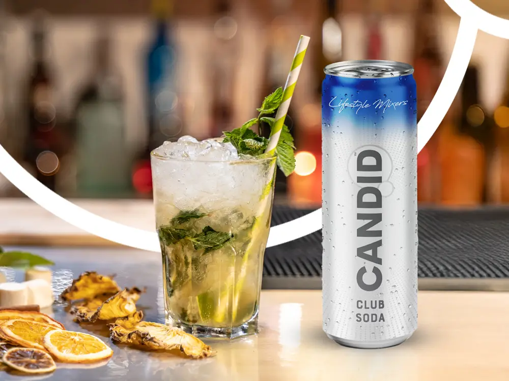 Mint Mojito refreshes the classic cocktail by muddling fresh mint with sugar and lime, then topping it with the crisp effervescence of Candid Club Soda for a minty, refreshing twist.